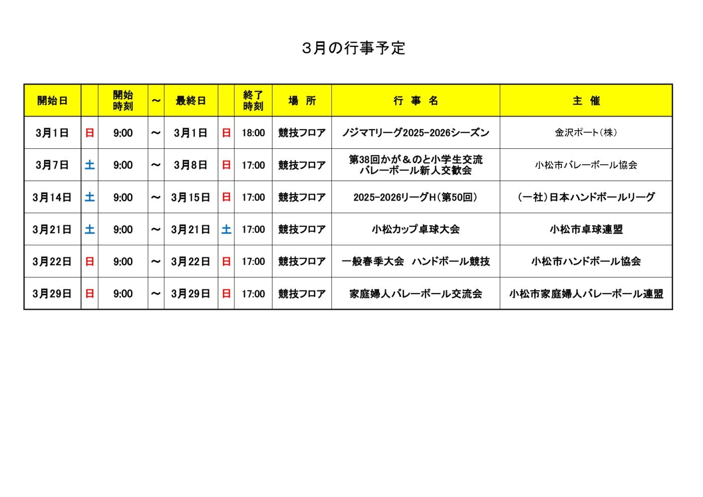 3月の行事予定