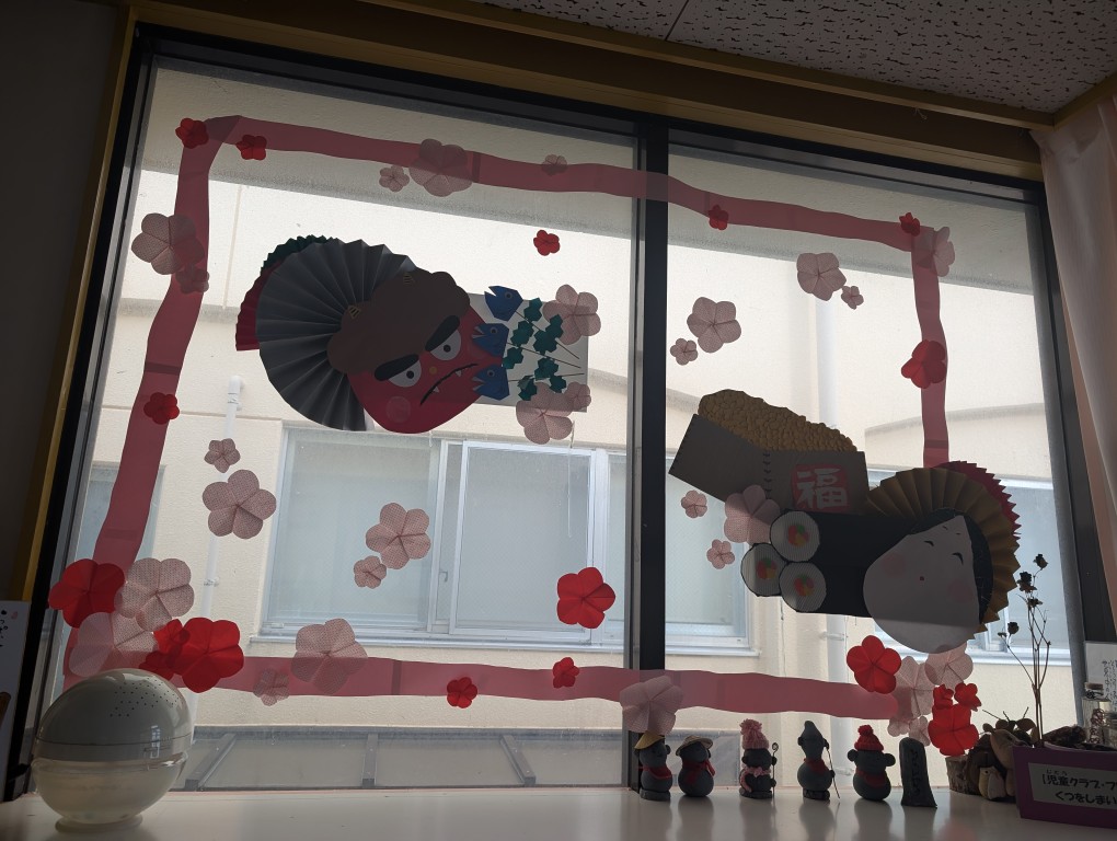 お知らせ HOMEお知らせ一覧2月の玄関飾り 2026.02.03福祉・学童new【西部児童センター】2月の玄関飾り 2月になりました。 玄関も模様替えしました。 大きな恵方巻きに福豆 振り返ると天井からはシマエナガが見守ってくれています。 まだ寒い日も続きますが、寒さに負けず楽しく今月も過ごしましょうね。 前へ 一覧 次へ
