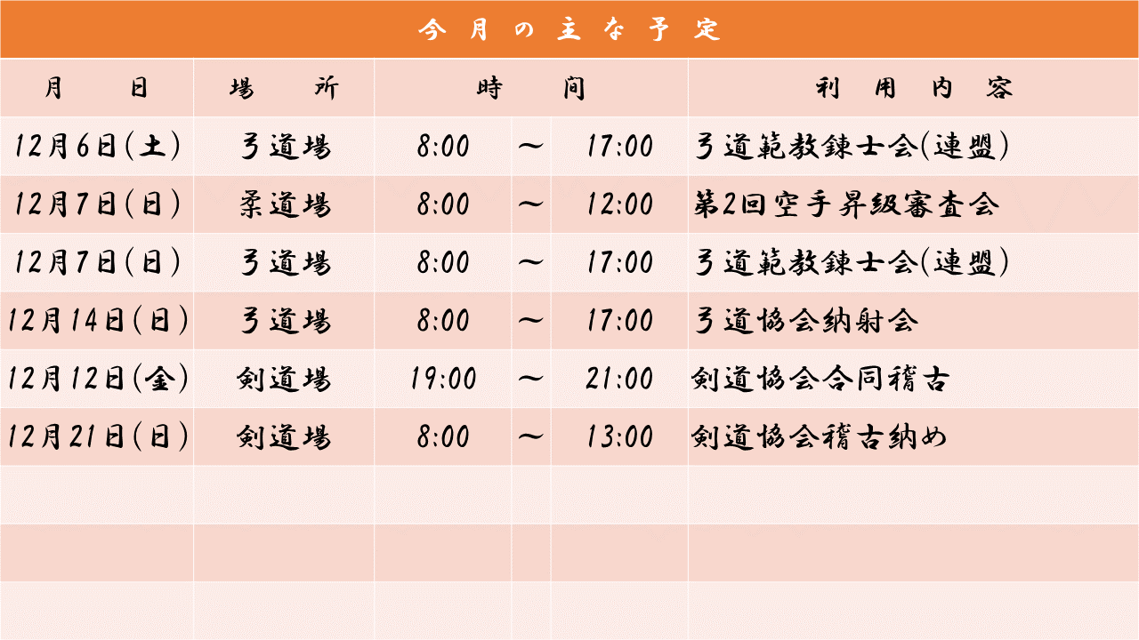 お知らせ HOMEお知らせ一覧小松市武道館12月の行事予定 変更1 2025.12.02スポーツnew【小松市武道館】小松市武道館12月の行事予定 変更1 小松市武道館12月の行事予定 前へ 一覧 次へ