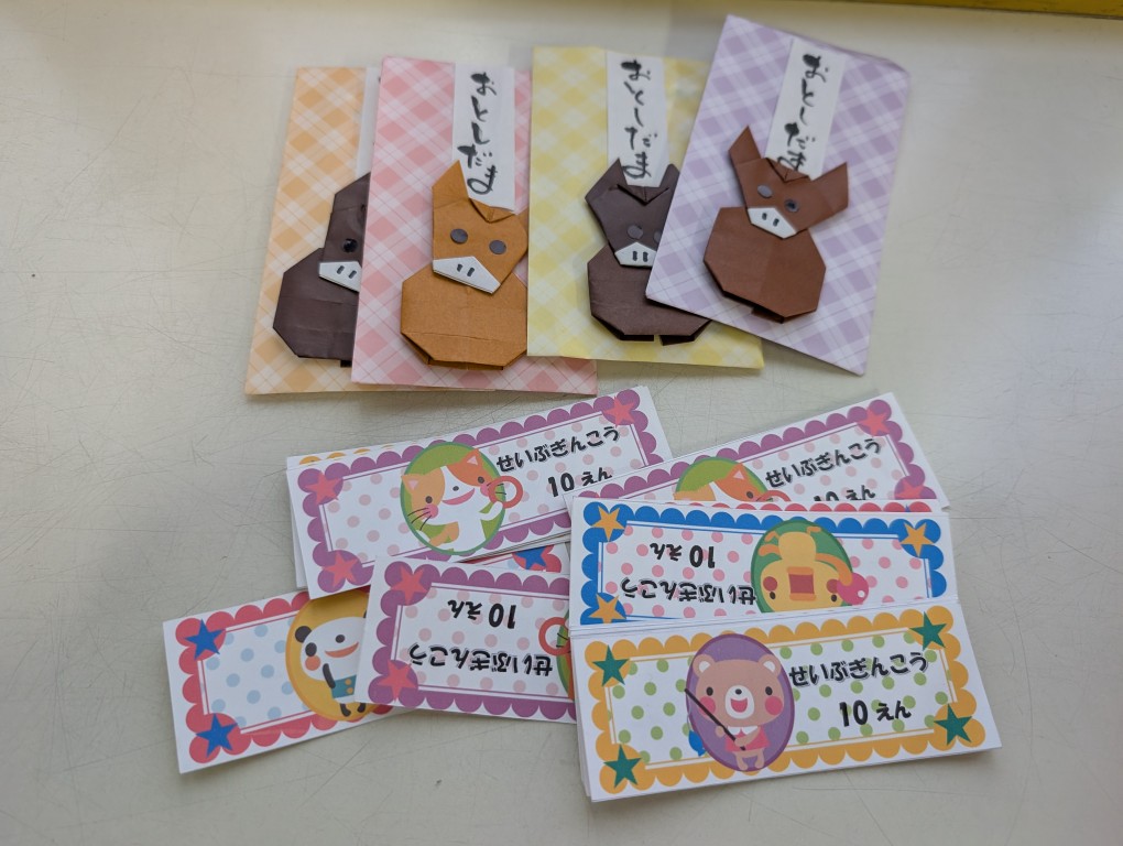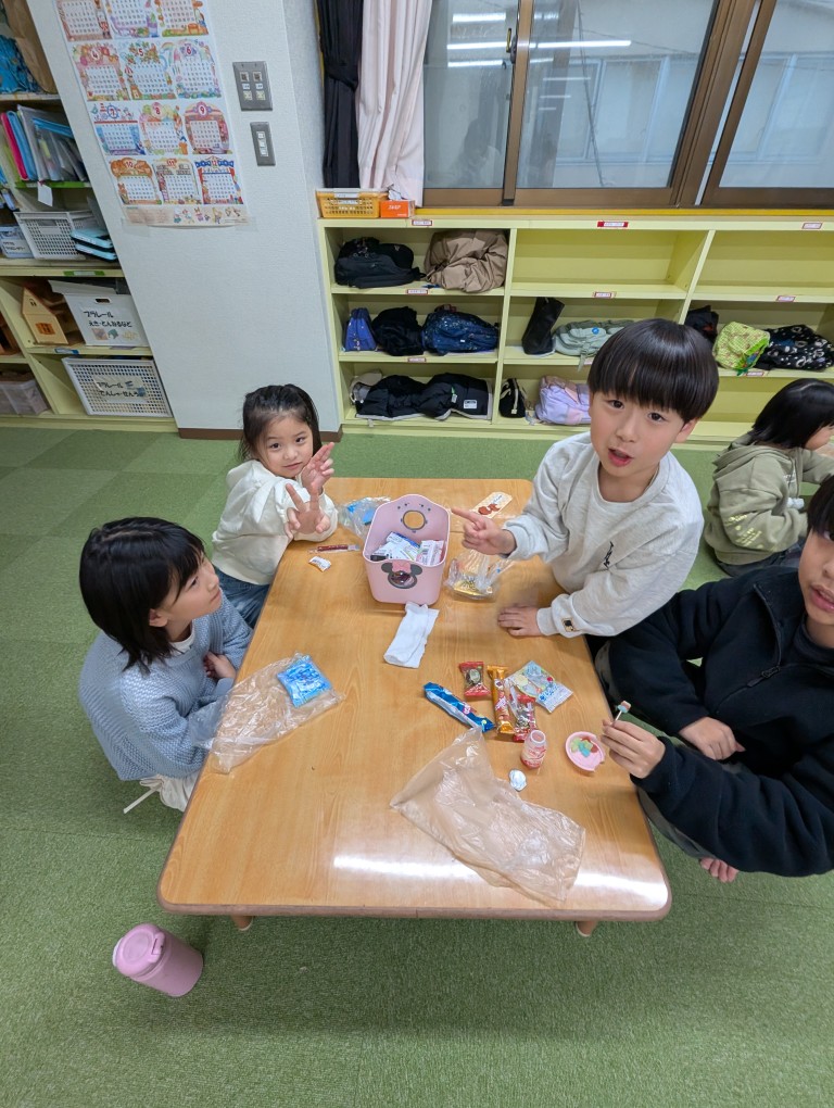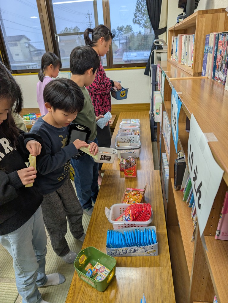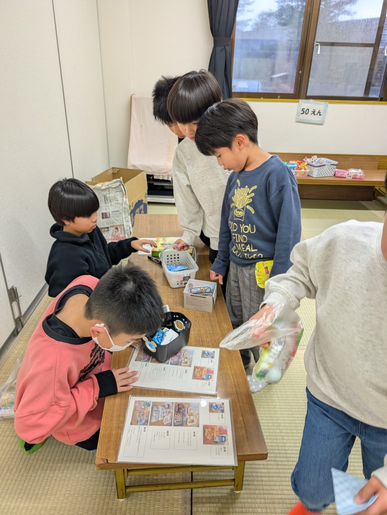 お知らせ HOMEお知らせ一覧お年玉でだがしおやつ 2026.01.08福祉・学童new【安宅・牧児童クラブ】お年玉でだがしおやつ 冬休み最後の日はクラブからこどもたちへお年玉。 といっても西部児童センターでしかつかえない紙のお金150円分。 それをもってお隣の部屋で駄菓子のお買い物。それが当日のおやつ。 高学年有志のおともだちがお手伝いをしてくれ、商品を陳列し値段表示もし、レジ係もしてくれました。 1年生は初めてのお買い物体験。好きな駄菓子を選び、その分のお金を一緒にかごへ入れの繰り返しで使い切ります。10円の駄菓子を買い占める子や、お友達と同じものを選ぶ子それぞれでしたが、楽しみました。 前へ 一覧 次へ