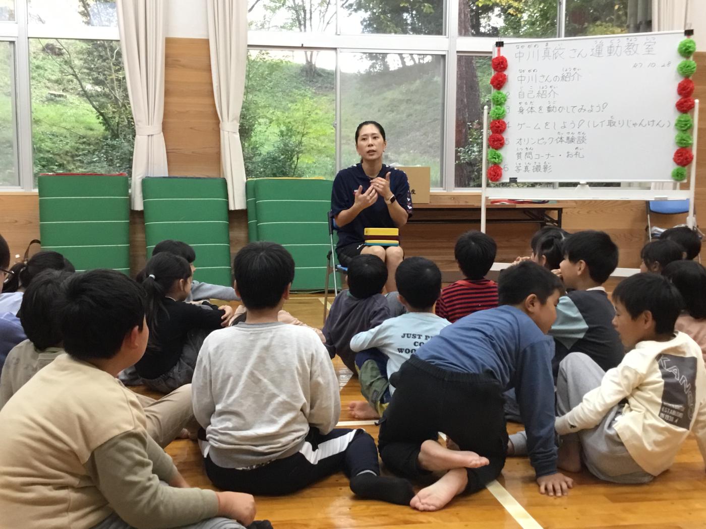 10月28日(火)、オリンピアン中川真依さんが東部児童センターに来てくれました