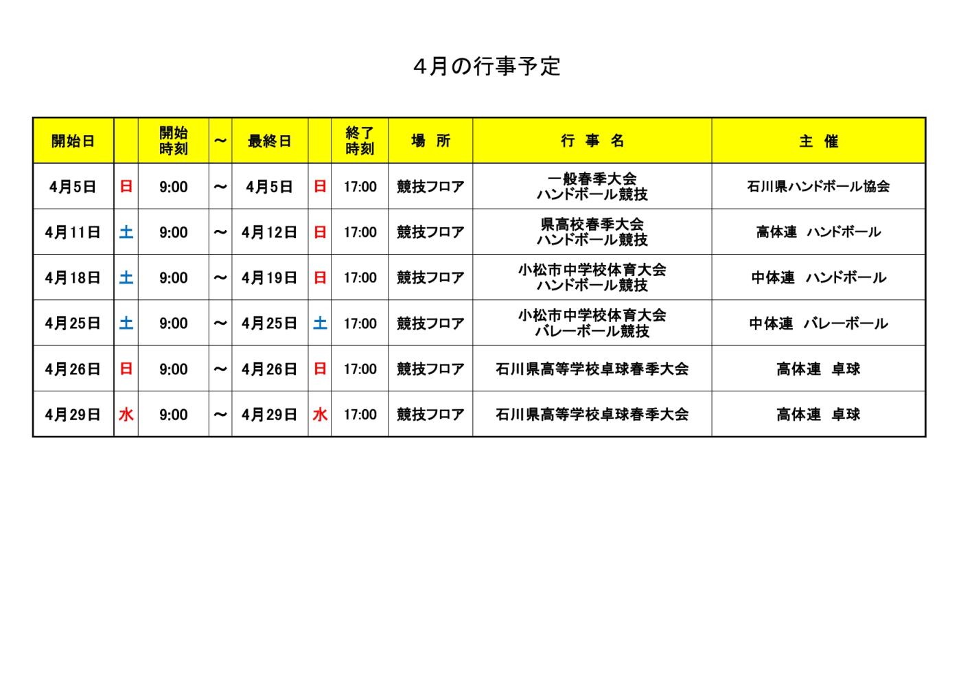 4月の行事予定