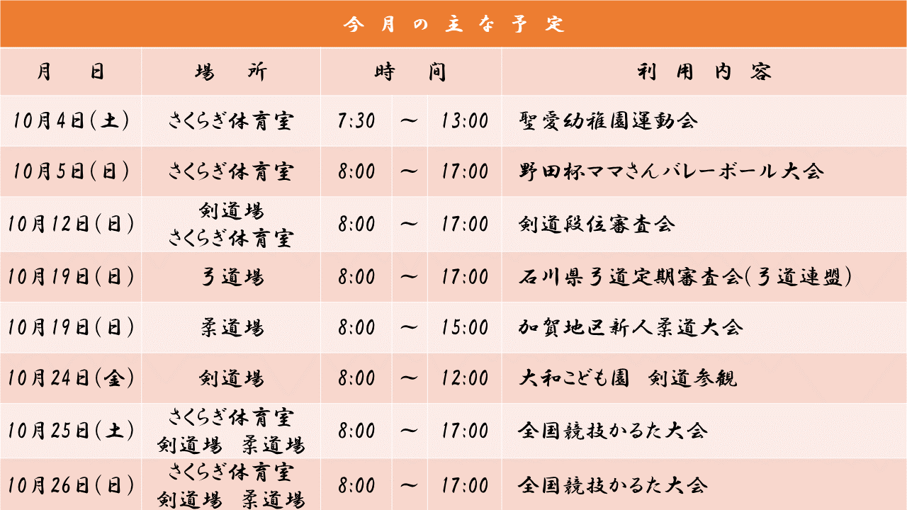 new【小松市武道館】小松市武道館10月の行事予定(変更)
