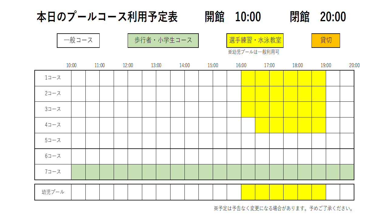 【プール開館時間】